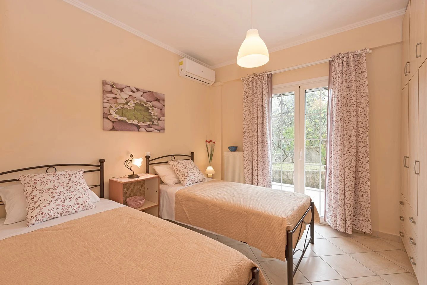 The apartment is located in a rural area, about 7km from Corfu town. Situated in the middle of Corfu island, an equal distance from Corfu North and Corfu South. Less than 20 minutes drive from beaches in Central-West and Central-East Corfu.