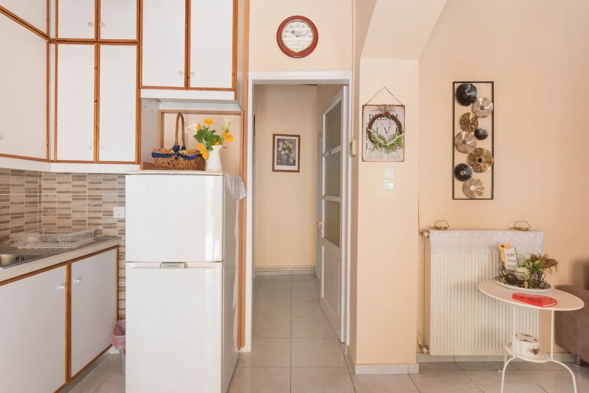 Situated in a residential area, the room is conveniently located halfway between the airport and Corfu Old Town. The neighborhood is peaceful and safe, with a mix of homes and local businesses, including a Lidl supermarket, car rental agencies and luggage storage services. The nearby Green Bus Station ensures effortless transportation across Corfu. The quiet streets and ample parking make this a perfect base for your adventures.